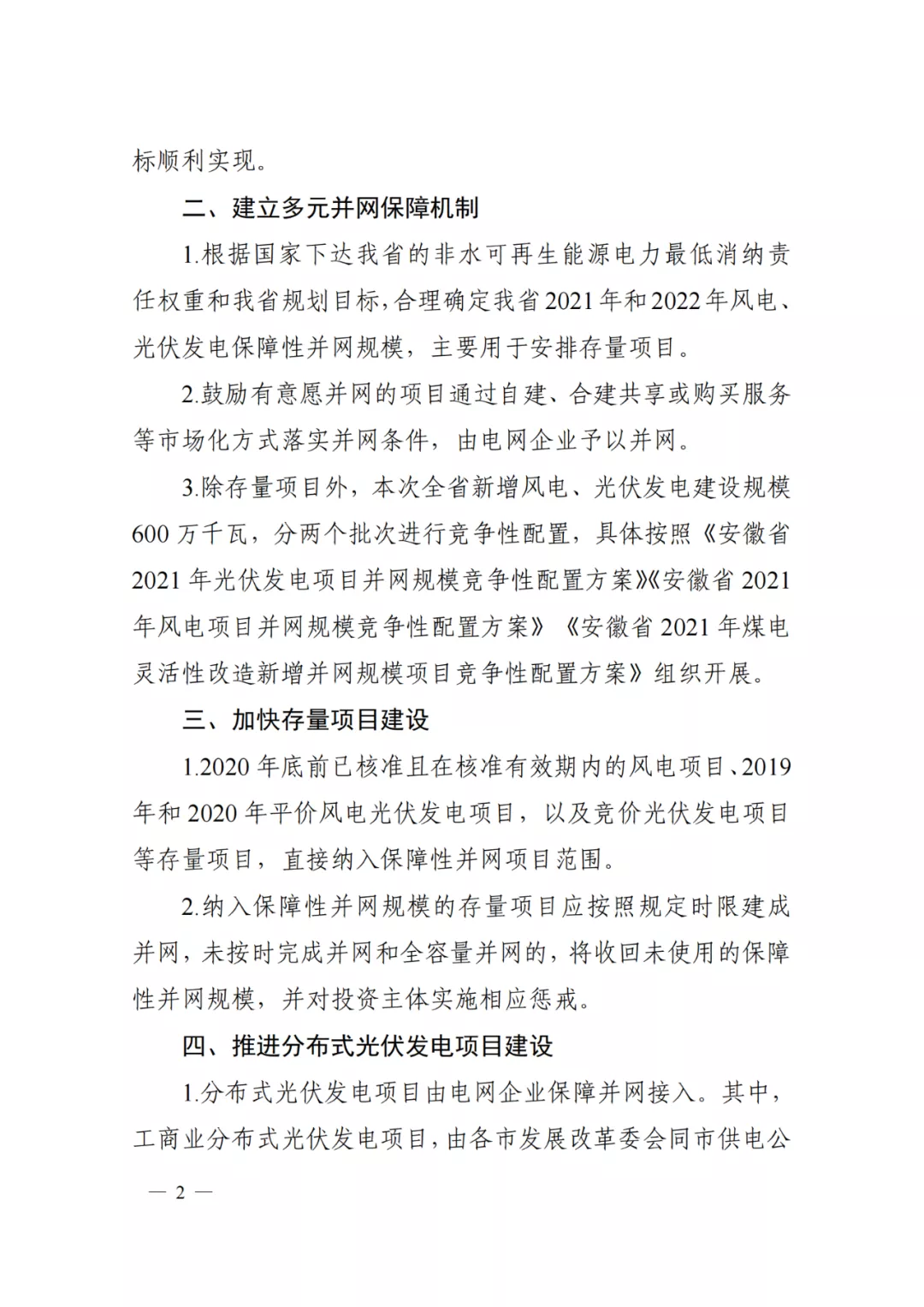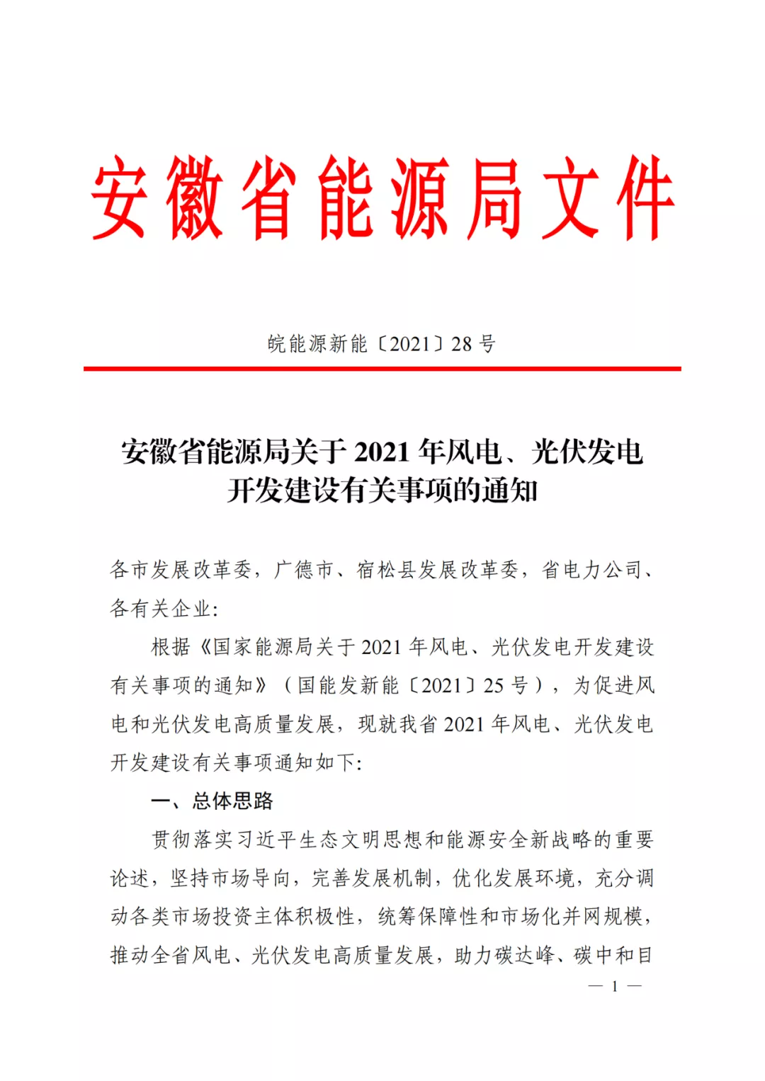 【政策通知】安徽:新增600萬千瓦《關于2021年風電、光伏發(fā)電開發(fā)建設有關事項的通知》