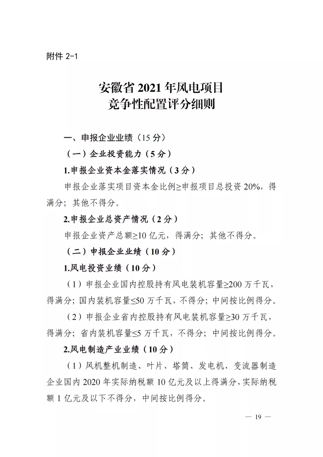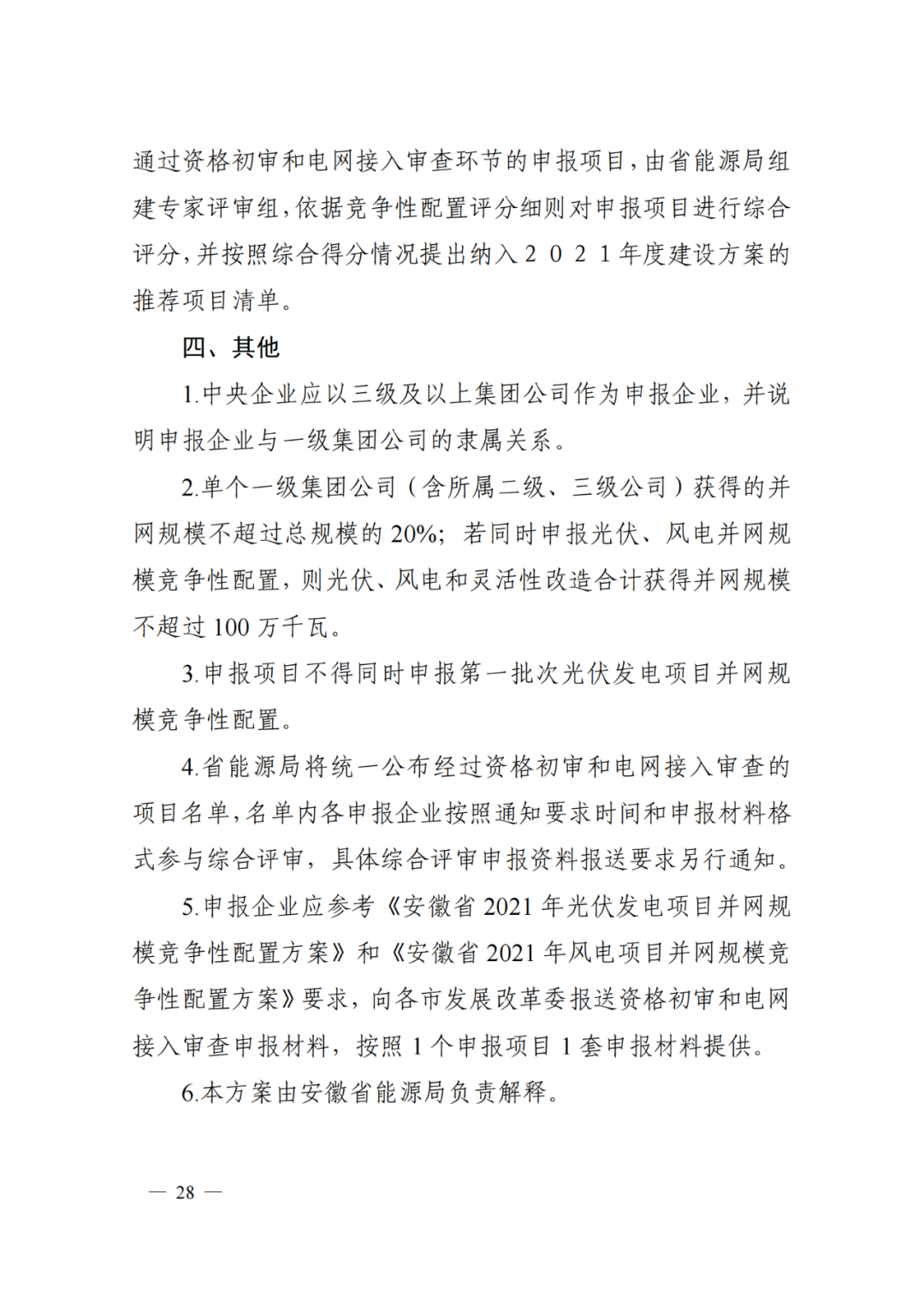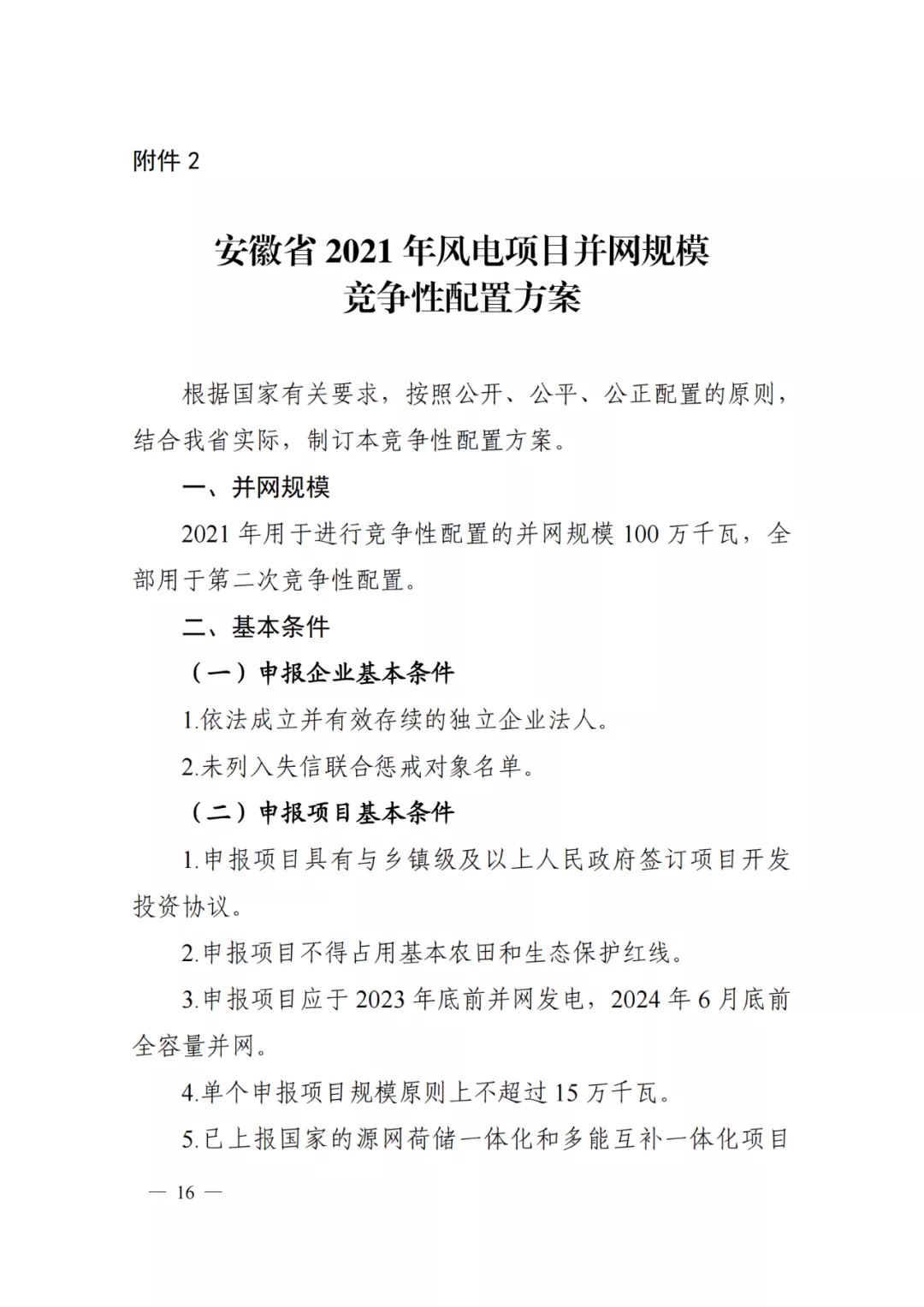 ?。?)風電項目:2021年用于進行競爭性配置的并網(wǎng)規(guī)模100萬千瓦,全部用于第二次競爭性配置。